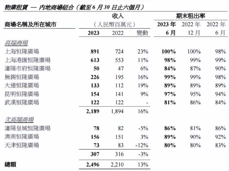 当然,上海以外的高端商场表现也不差,大连恒隆广场租金收入同比上涨19%至1.33亿元,无锡恒隆广场租金收入同比上涨16%至2.26亿元。