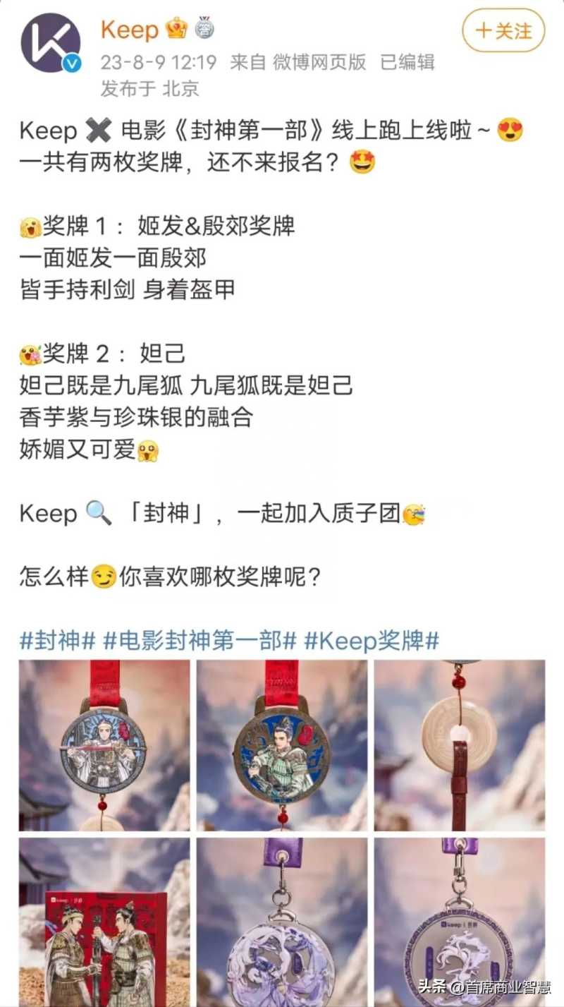 另一个是Keep,这个就跟《封神》有点相关性了,它也是在电影口碑出圈后才开启的合作,宣传方式格外契合电影本身的爆点。