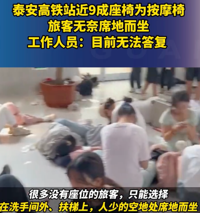 泰安高铁站最近引起热议,车站内大量按摩椅占据座位,导致缺乏普通座椅。旅客只能站着等车或坐在按摩椅上,感觉不便。有人猜测,这可能是车站与按摩椅厂商合作的营销之举。