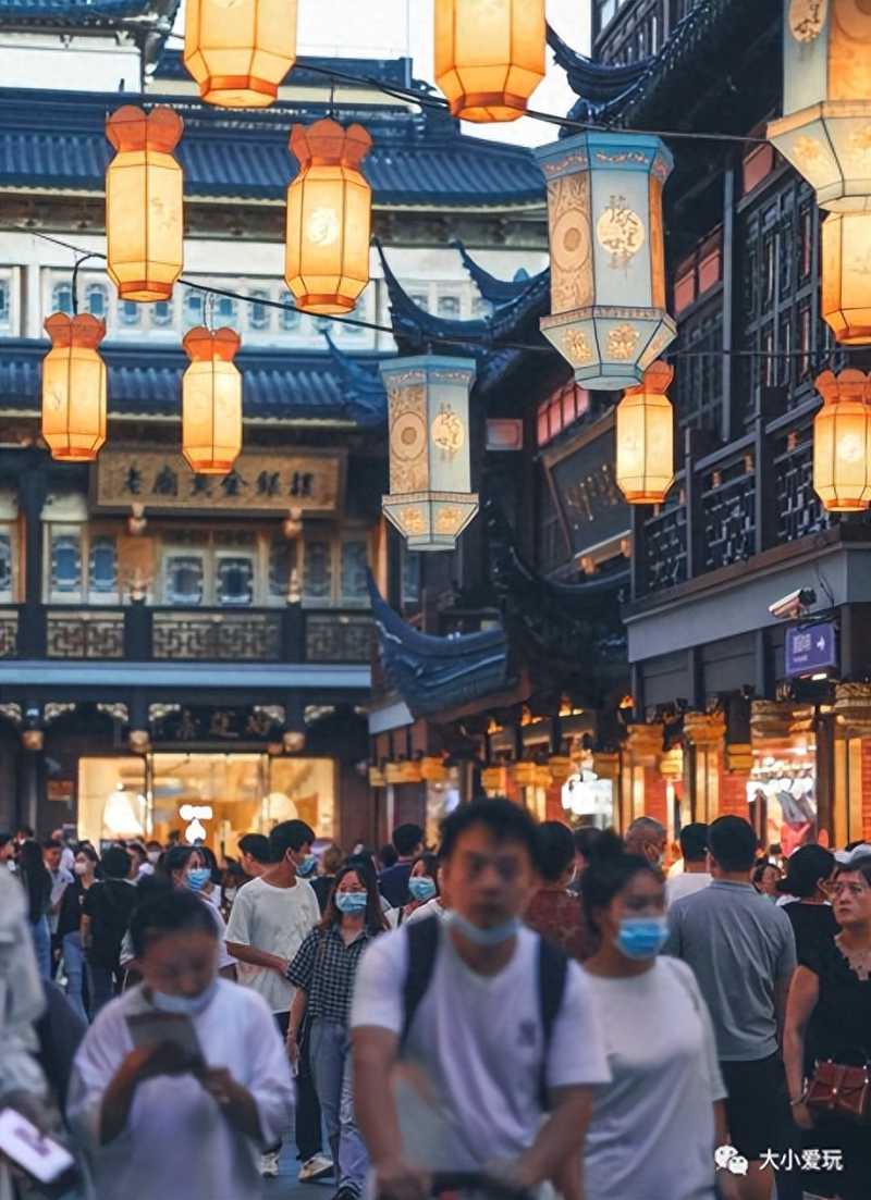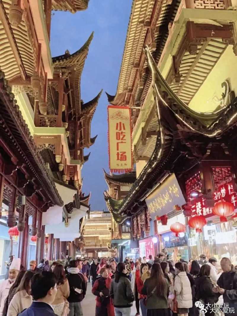 城隍庙步行街挨着豫园,节假日的时候会有豫园灯会,这时候的步行街张灯结彩,华灯初上更加映衬老街,很适合来逛一逛,但是拍照打卡即可。