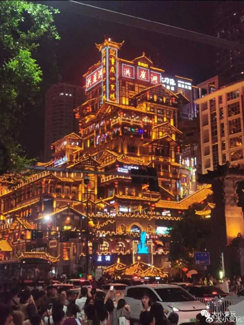 白天的洪崖洞没什么特色,夜晚8点后开灯,远景拍照特别出片,但是进到里面真的会很崩溃。尤其是在1楼基本打不到车,必须挤电梯或者爬楼梯到11楼。即便到了11楼也很难打到车,只能选择坐地铁,或者拖着疲惫的脚步走到解放碑。