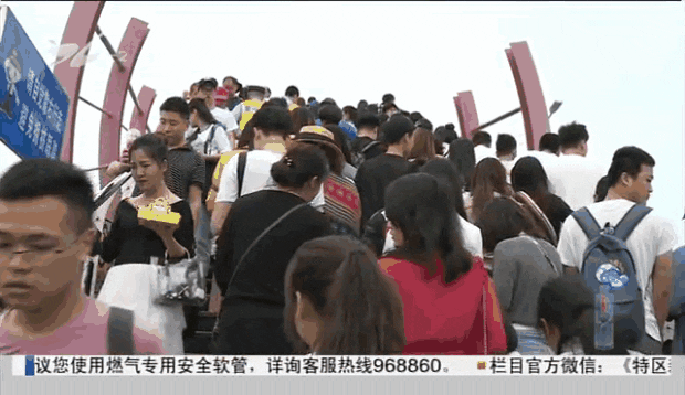 2019年电视上报道的五一假期曾厝垵的鱼骨天桥盛况