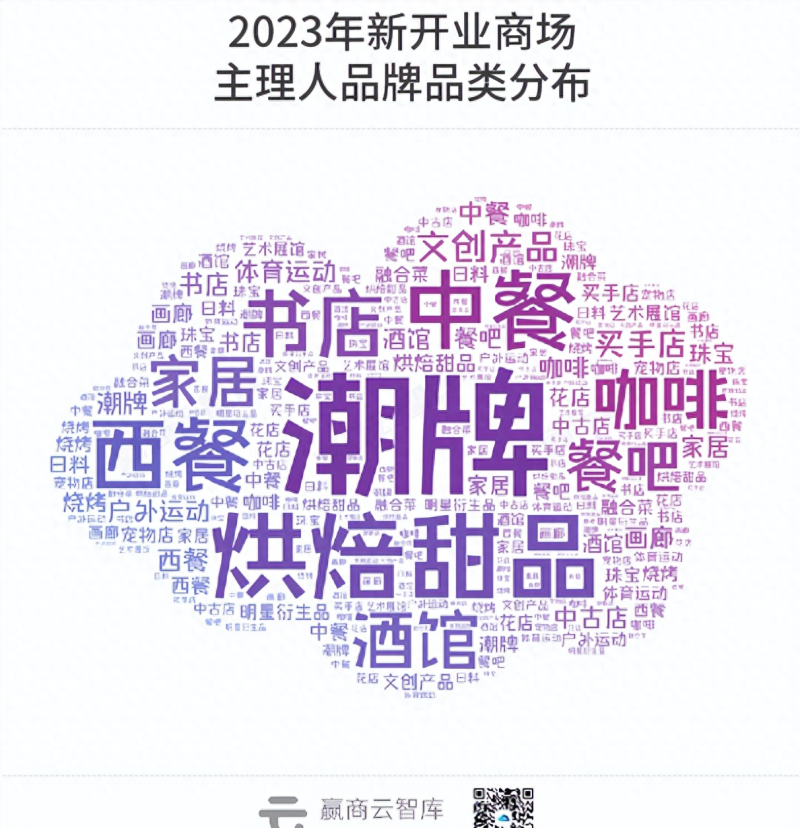 业态类型上,据赢商云智库不完全统计,2023年新开业商场已进驻主理人品牌主要集中在潮牌、酒馆、烘焙甜品、咖啡等品类。