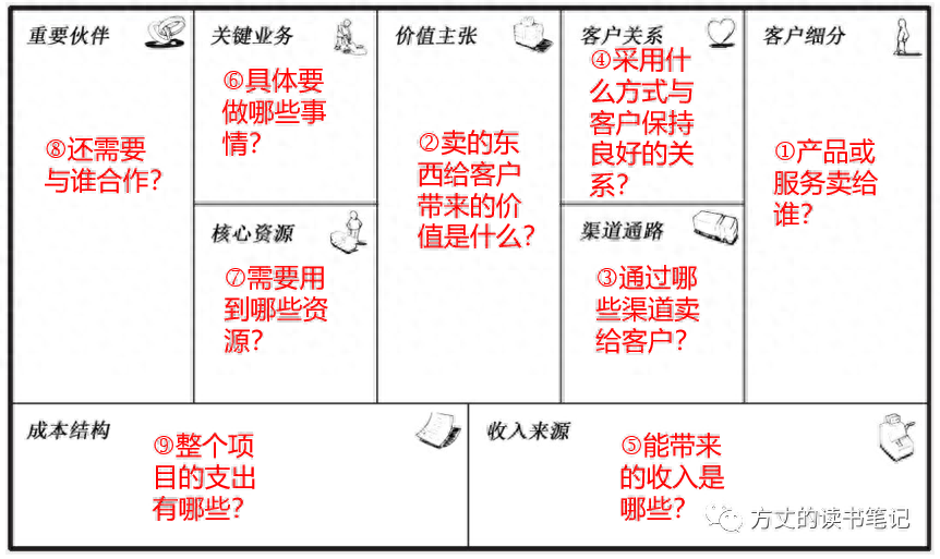 前台的客户细分、客户关系、渠道通路、价值主张回答的是为顾客创造什么价值?后台的重要伙伴、关键业务、核心资源回答的是你怎么才能做到?底座的成本结构和收入来源则回答你的商业模式是否可以盈利?如果不能盈利,显然就无法维持运转。