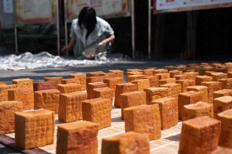 勤奋开拓是唐家观人骨子里的基因。今天走在唐家观的老街上,依然可以看到人们在不停地忙碌着。小广场上有人在晾晒豆腐。金黄色的豆腐成排摆设,颇为壮观。大家都喊晒豆腐的姑娘叫“六姑娘”。有人说她是“网红”,她便显露出很不好意思的神情。