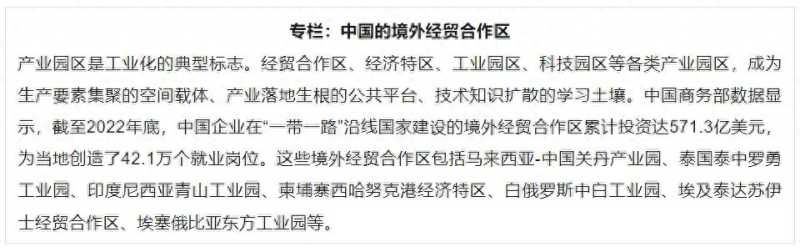 共建“一带一路”国家的产业合作,推动并强化了这一趋势。中泰新丝路塔吉克斯坦农业纺织产业园,帮助当地从棉花种植向棉纺织全产业链跨越。印度尼西亚摩洛哇丽县的青山工业园区,将曾经偏僻的小渔村变成了全球重要的镍矿开采冶炼和不锈钢产业基地,助力印尼“从卖30美元/吨镍原矿到卖2300美元/吨不锈钢”。在埃及泰达苏伊士经贸合作区,巨石玻璃纤维公司建成年产20万吨玻璃纤维生产线,令埃及成为全球第四大玻纤生产和贸易国,吸引大量上下游企业赴埃投资。