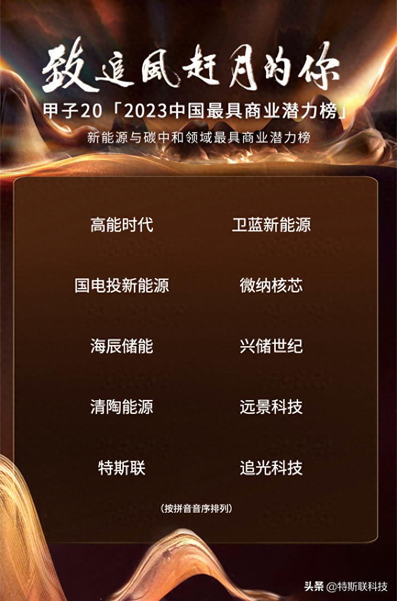 近日,知名中国科技产业智库甲子光年重磅发布了“甲子20” 2023中国最具商业潜力科技企业榜。凭借其打造的系列能碳管理及光储直柔解决方案,特斯联荣登“新能源与碳中和领域最具商业潜力榜”。与之一同登榜的还有国电投新能源、远景科技等知名企业。
