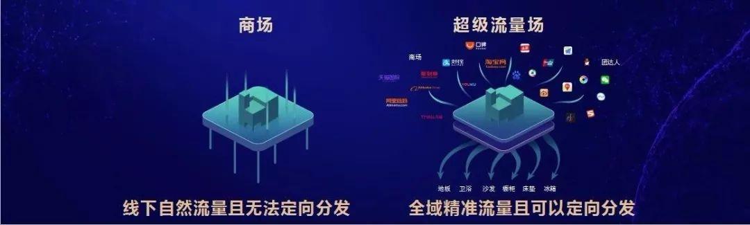 做个对比,以前的商场可以从线下获得自然流量,但自然流量的流动是不可控的,红星美凯龙无法把消费者带到最符合他购买需求的门店里去。而现在的超级流量场,红星美凯龙可以通过精准用户画像和潜客雷达等工具把超级流量场中正确的人在正确的时间用正确的内容带到正确的品类或品牌商家面前,从而完成流量的定向分发。