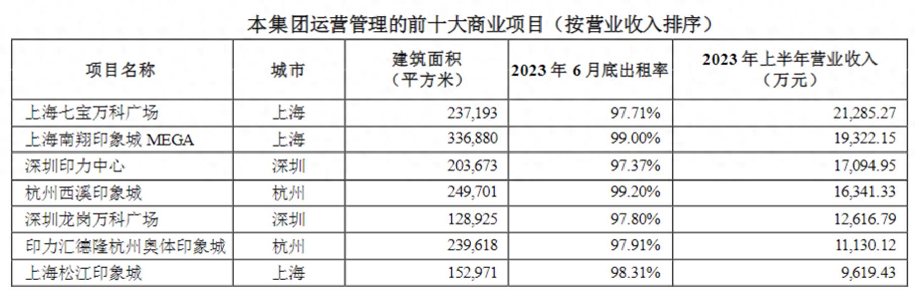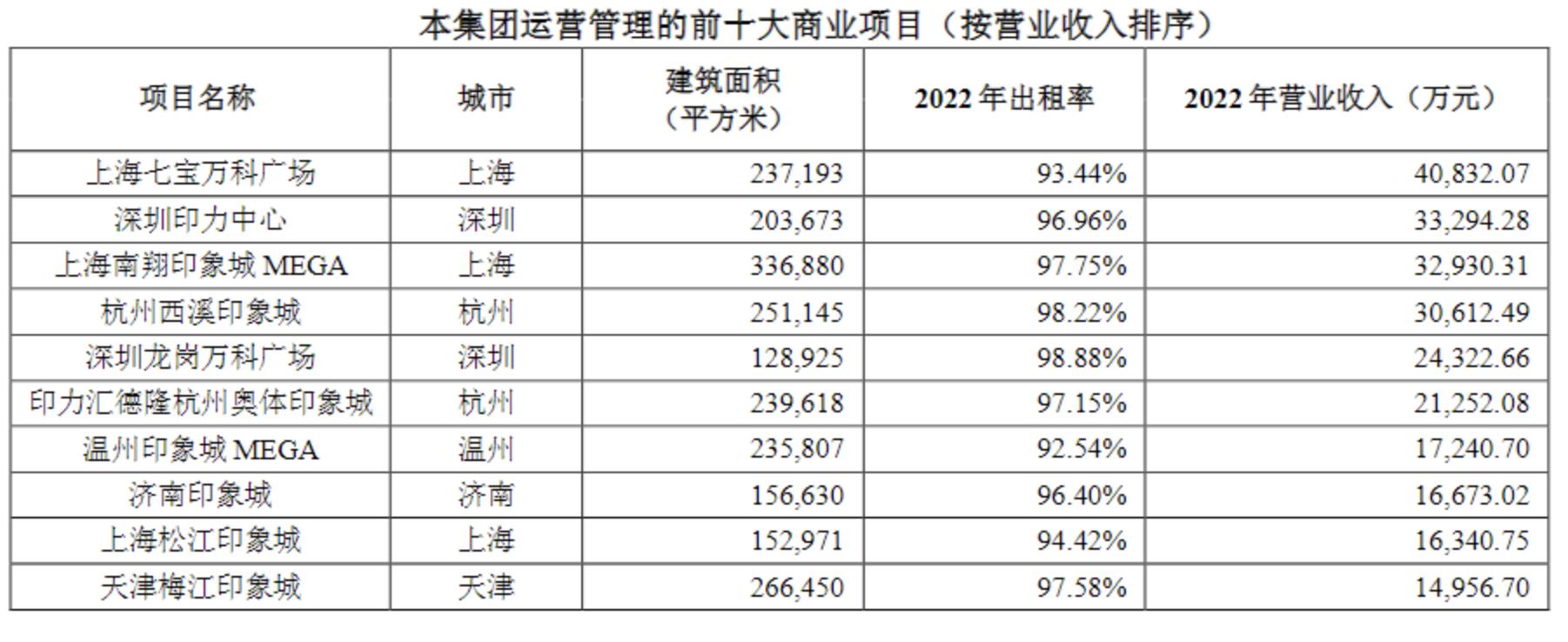 据每经记者观察,南翔印象城MEGA和七宝万科广场一直是万科在上海最赚钱的两大商业项目。2022年和2023年上半年(注:2023年年报未披露相关数据),七宝万科广场营业收入分别约4.1亿元和2.1亿元,在集团运营管理的前十大商业项目中排名第一;上海南翔印象城MEGA则在2022年创造了约3.3亿元业绩,排名第三,2023年上半年又升至第二名,营业收入约1.9亿元,出租率达到99%。
