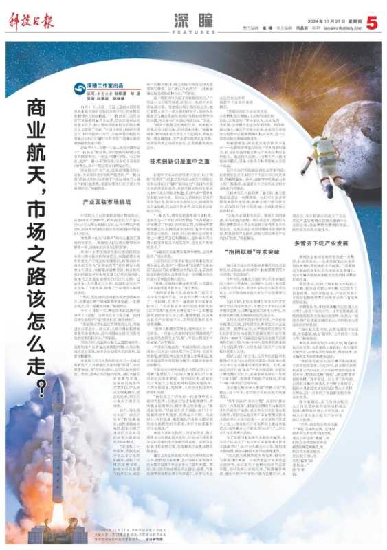 “我建议初创企业应该关注小而精的细分领域,在这些领域探索创新,实现盈利。”该专家认为,从宏观角度来看,这种模式也适合我国国情。我国制造业强大,擅长开发细分市场,企业在许多细分市场都可以做到规模和技术领先,这一点在商业航天领域同样适用。