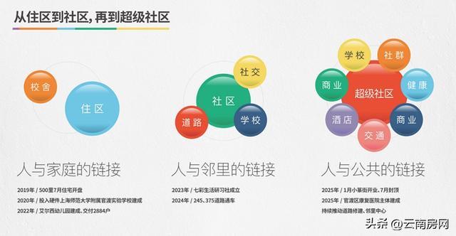 第三招是扩展社区商业的功能与场景,从住区到社区,再到超级社区,万科500里用6年时间诠释了超级社区的形成过程,本质上说,万科超级社区最核心的概念就是链接,人与家庭、人与邻里,到人与公共空间,链接在不断深化和进化。