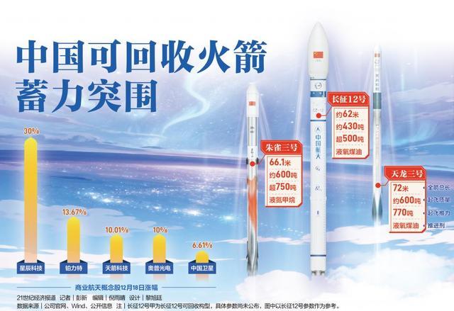 紧随朱雀三号之后,12月18日的最新进展显示,由中国航天科技集团八院抓总研制的长征十二号甲可重复使用运载火箭,计划于本月中下旬在酒泉迎来首飞。当日,星辰科技、铂力特、天箭科技等商业航天概念股应声大涨。两大任务的密集衔接,可视作2025年中国商业航天最具标志性的进展,有望重塑市场规则。