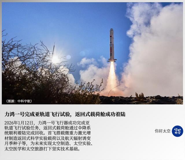 中科宇航|力鸿一号完成亚轨道飞行试验并成功回收返回式载荷舱,验证了高可靠伞降减速和精确落点控制技术,推动亚轨道技术向商业化工程应用迈进。
