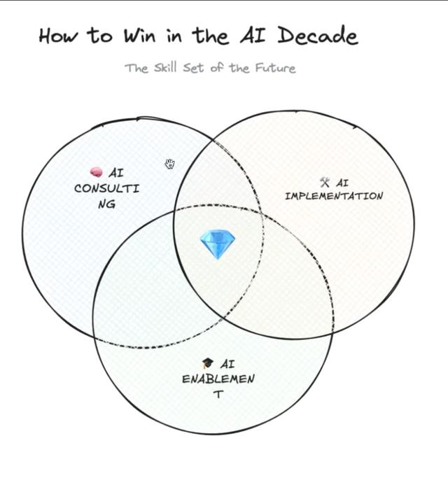 第四种高价值的角色是AI officers(AI官员)或fractional AI officers(兼职AI官员),他们具有业务敏锐度和AI技术理解的综合技能集,可以为企业提供同样的服务组合,帮助企业在AI时代转型。Ben提到这个角色有很多名字,比如fractional AI officer或AI transformation officer(AI转型官员),但归根结底是那些拥有特别高价值技能集的人,能够从AI解决方案中为企业带来真正的ROI。