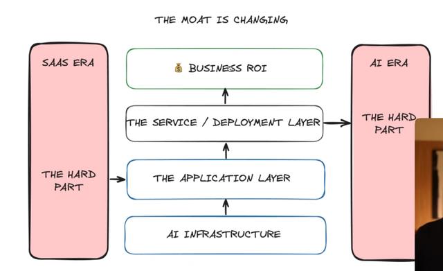根据具体软件的不同,有些更倾向于定制服务,有些更倾向于培训赋能,有些更倾向于咨询。有时是三者的混合,但对于几乎所有这些AI原生软件业务来说,这个服务层仍然是向企业交付真正ROI所必需的。这彻底打破了我之前对软件业务的理解。在传统SaaS时代,最成功的商业模式是完全自助服务、可扩展的产品。但在AI时代,即使是最好的产品也需要服务层的支持。