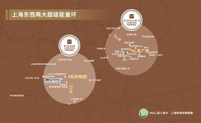 【TIPS】以人民广场为中心,直线5公里范围内,汇集着6个年销售额30亿元以上的商场(南京西路恒隆广场、兴业太古汇,淮海路新天地、iapm,陆家嘴ifc、第一八佰伴,5公里稍出头还有徐家汇恒隆港汇、长宁龙之梦和环球港),是名副其实魔都商业核心。目前唯一能与之比较的,只有西南中心环虹桥枢纽的大虹桥。