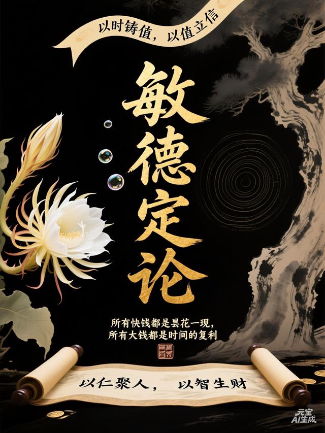 敏德定论:所有快钱都是昙花一现,所有大钱都是时间的复利。脱离时间沉淀的金钱,都是投机的泡沫;没有价值深耕的变现,都是短期的收割。这是内圣修身的核心底线 ——以时铸值,以值立信,以仁聚人,以智生财。