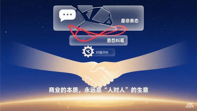 在商业里,我们遇到的 80% 的冲突,都不是现实世界的 “是非” 问题,而是心理世界的 “恩怨” 问题。客户说 “你们的产品不行”,可能不是产品真的有问题,而是她觉得 “你们的服务态度不好,不尊重我,让我不舒服”,心里有了怨;员工说 “这个制度不合理”,可能不是制度真的有问题,而是他觉得 “我的付出没有被看见,没有被认可,老板只知道挑错”,心里有了怨;合作伙伴说 “你们不讲信用”,可能不是真的有信用问题,而是他觉得 “你们只考虑自己的利益,根本不顾及我们的死活”,心里有了怨。
