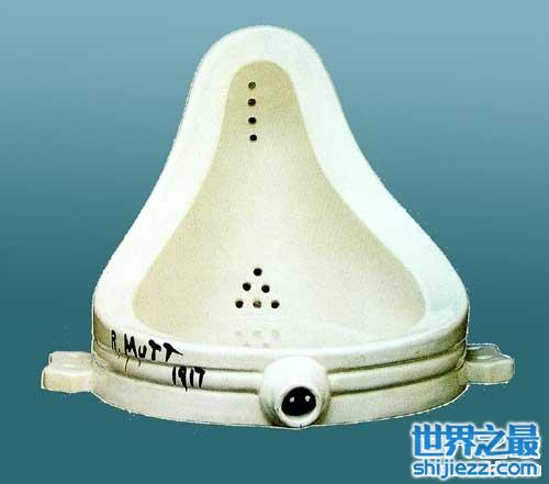 就是下面这个了,达达主义的代表作之一,法国艺术家马歇尔·杜尚(MARCEL.DUCHAMP)的作品:“泉” 这作品确切说根本不算是他做的,他只是买了一个现成的小便池,签了个假名就拿去参展了。所以这作品他“做”了好几个送人,印象中美国有一只,法国应该也有一个,但没在POMPIDU里面见过。这个是意大利现代博物馆里的。