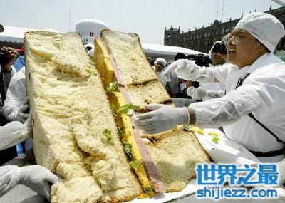 2004年4月24日,墨西哥一面包生产企业的24名师傅制作成一个总重3173公斤,长宽各为3.5米的三明治。这个巨型三明治被正式列入《吉尼斯世界纪录大全》。