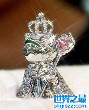这个白金制成的Hello Kitty玩具高41毫米,重75克,它身披斗篷,上面缀满流光溢彩的钻石。