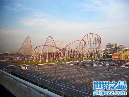 这个世界上最长的过山车,在日本长岛温泉乐园,俗称“钢龙”。重达5000吨、造价5000万美元、长度2,497米,也是世界上最快、最高和落差最大的过山车。在210秒的历程中,您会尖叫着以每小时153公里的时速一路飞驰,在一段近100米的垂直下落过程中体验到近乎自由落体的下冲速度。