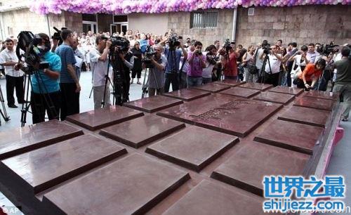 一提及巧克力艺术制作的圣地,人们首先会想到比利时和瑞士,但现在,巧克力领域一项新的吉尼斯纪录却在亚美尼亚诞生:该国日前制作出了世界上最大的巧克力。亚美尼亚首都埃里温超级糖果厂制作的这块巧克力重达9702英镑(约合4.4吨)。世界吉尼斯组委会代表伊丽莎白·史密斯12日将吉尼斯证书授予了工厂负责人瓦尔·达尼扬。达尼扬称,此举是为了庆祝该公司成立10周年。此前的记录是由意大利人在2007年创造的。