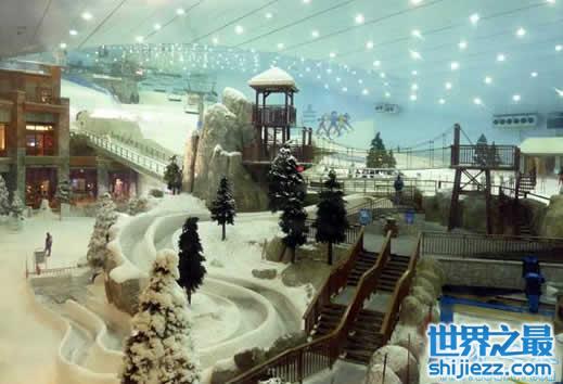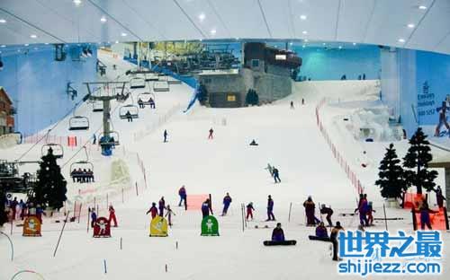 迪拜室内滑雪场,是目前全球最大的室内滑雪场,在终年炎热的阿联酋相当受欢迎。滑雪场面积相当于3个足球场,拥有5个不同难度及长度变化的坡道,最长达到400米,里面还养了几十只南极企鹅陪孩子们玩耍。