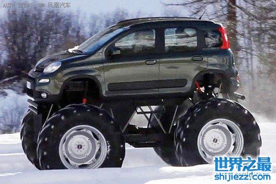 该车直译过来的名字为大脚熊猫,即菲亚特熊猫汽车的大脚版本。该车由菲亚特熊猫的车身,配合Jeep公司提供的CJ7越野底盘,加上四个直径达1.5米的轮胎而组成。虽然车身看起来颇为可爱,可是在越野行驶方面,该车一点也不含糊。