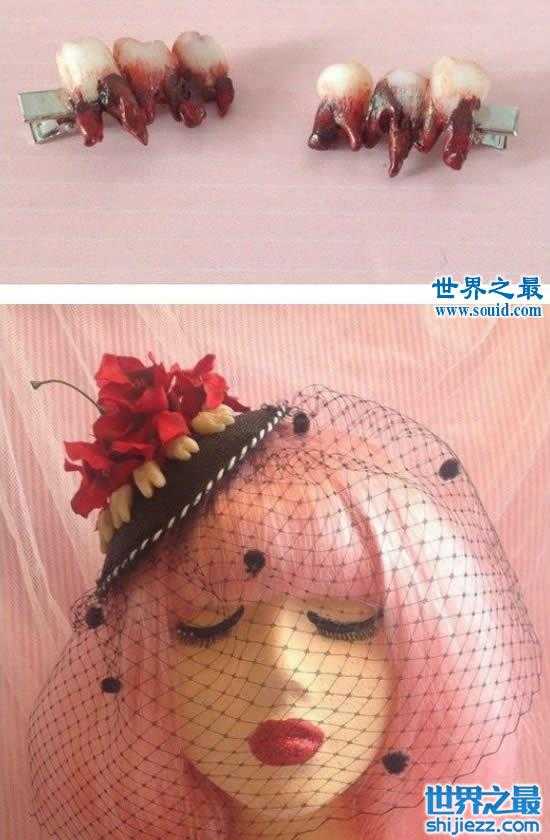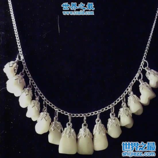 用真人牙齿做成的项链、手镯和耳环,有人觉得有意思有人估计得惊恐地大叫。