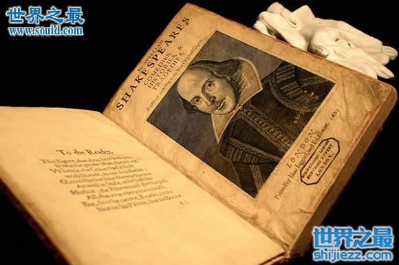 第一对开本特性36威廉莎士比亚的戏剧,它于1623年推出,成本不到1美元、但在2001年一份卖600万美元。