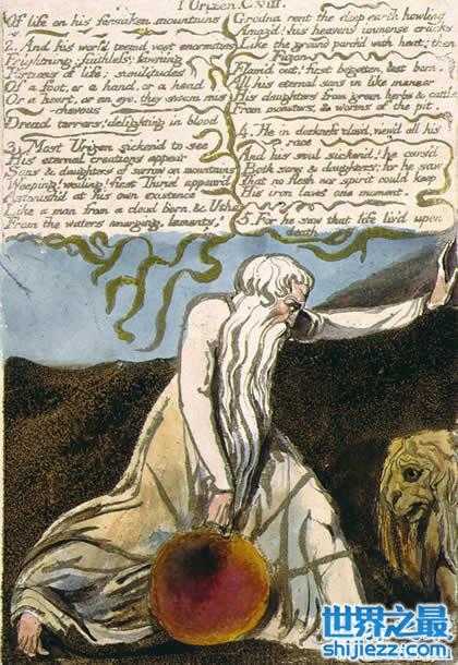 这本书出版于1794年,是由威廉.布莱克、早在1999年以250万美元出售,价值可能更多的今天。这是书是一种paradoy这本书的《创世纪》和小说中的人物Urizen、本书描述了Urizen“primeal牧师”,告诉他是如何与其他分离永恒创造自己的疏远和奴役的宗教教条。