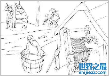 将羊毛变成织物似乎是一件很有成就感的事,至少是在它们被运到漂洗工那儿之前,他们会连续8小时踩踏羊毛,以去除其中的杂质。在中世纪,分解羊毛中天然油脂的最好方法就是在碱溶液中漂洗,而当时,最容易获得的碱溶液就是久置的尿液,而从农场和家庭收集尿液夜视漂洗工的工作。有意思的是,如果你的姓是Fuller、Tucker或Walker,你可能就是这些工人的后代。