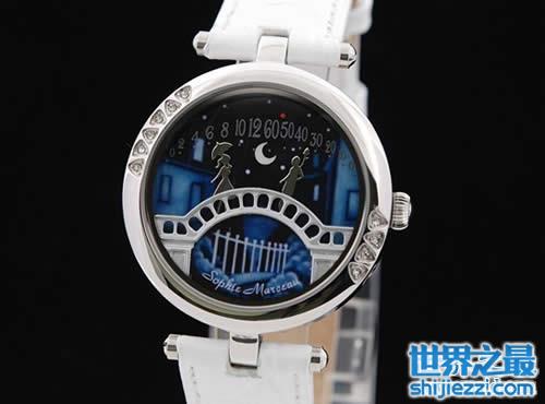 恋人之间如果选择最浪漫的物品,那么情侣手表绝对是不二之选,梵克雅宝公司看中了这个商机,推出了一款本世人称呼为“世界上最浪漫的手表”,梵克雅宝恋人之桥,它最大的设计亮点就是“一天一吻”,当每天23.55的时候,表盘上的男女相拥在一起深吻5分钟。