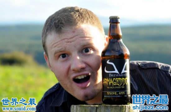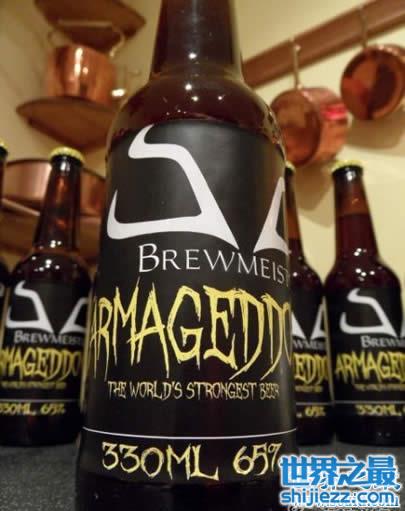 在蛇毒(Snake Venom)还没出现之前,末日毁灭(Armageddon)绝对是世界上酒精度数最高的啤酒,世界上最烈的啤酒。其酒精浓度是65%。成分有黑麦芽汁,小麦,压片燕麦以及100%的苏格兰泉水。这个宝贝基本可以当威士忌酒喝了。