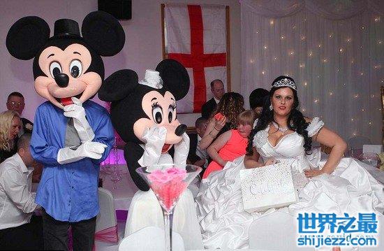 婚礼当天,丽贝卡身着白纱、头戴皇冠以及各种珠宝首饰,在4个身着粉色纱裙的伴娘的陪同下乘坐一辆明亮的粉红色轿车抵达婚礼现场。婚礼上还邀请了一个小矮人来迎接客人,并聘请了专业的迪士尼卡通米奇和米妮陪孩子们跳舞。