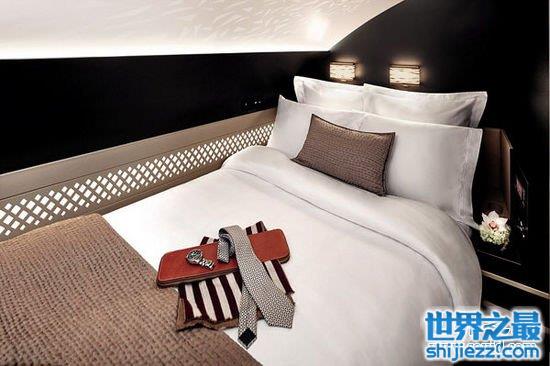 这个世界上最贵的机票都能提供哪些奢侈服务呢?据介绍,该奢华客舱位于空客A380的头等舱,为超豪华的三室套房,客厅、卧室以及独立浴室一应俱全,还配有独立的管家和厨师。客厅里配备了32英寸的LCD平板液晶电视、真皮双人沙发和两张折叠餐桌;卧室里有舒适的双人床,床单为意大利设计师亲自设计,这在商业航空中尚属首例。