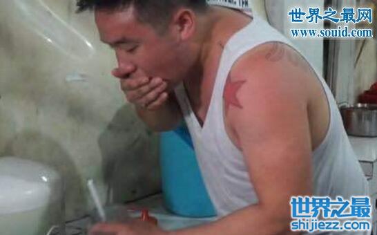 厨师拼命的想把吃下去的“死亡拉面”吐出来。