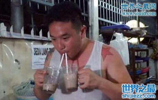 为了消除这种由辣度而引起的疼痛,该厨师喝掉大量奶昔。