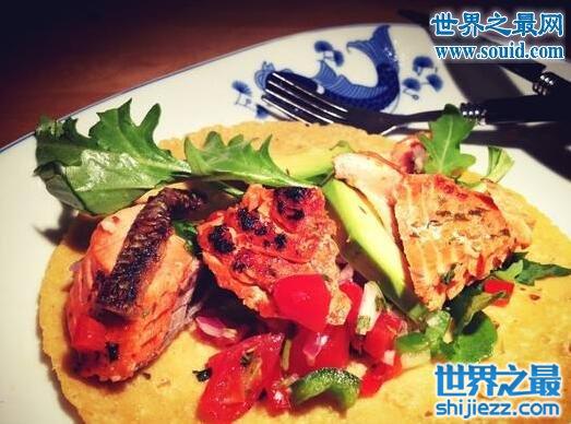 这个"墨西哥卷饼"牛逼了,号称地球上最贵的墨西哥卷饼,由行政总厨JuanLicerioAlcala亲手打造,仅此一个。墨西哥卷饼是墨西哥的传统食物,通常是使用用玉米粉制作的薄饼配以已熟的肉馅、蔬菜、芝士酱等馅料食用。
