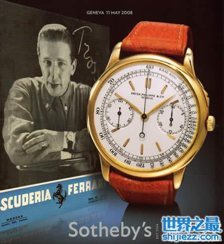 一只超大型的,可能是绝版的百达翡丽计时表在日内瓦的苏富比拍卖会上拍出天价,它在此之前曾是法拉利赛车公司(Scuderia Ferrari)总裁卡洛·费利切.特洛希伯爵的私人财产。这块名为“Trossi Leggenda”的金表,也创下了苏富比手表拍卖的价格之最。曾为赛车手的特洛希伯爵在其赛车生涯中曾赢得无数大大小小的胜利,其中包括1947年意大利大奖赛。