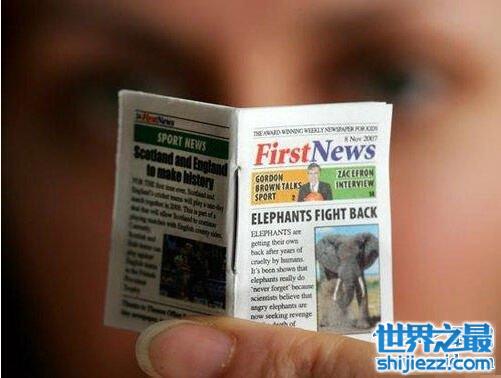 世界上最小的报纸则是一为名叫洛雷斯的巴西女律师主办的《尊敬的先生》。该报创办于1935年,其宽度仅为1.5厘米,长3.5厘米,共16页,每月一期。【查看详情】