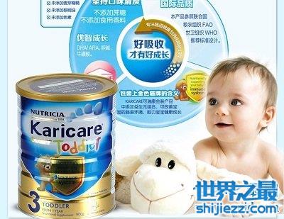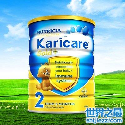 Karicare奶粉是新西兰婴儿奶粉第一品牌,是新西兰市场3大奶粉品牌之一,也是世界最大婴幼儿配方奶粉生产商荷兰纽迪希亚(Nutricia)公司旗下 的著名乳品品牌。Karicare是新西兰最大的奶粉配方开发商,是世界最大的专门生产婴幼儿奶粉公司之一,与牛栏同为荷兰Nutricia公司的世界著名乳品品牌。