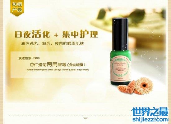 风靡欧美的大牌膜法世家1908想必大家已经耳熟能详了,这款免洗两用眼霜更一款无可挑剔的明星产品了,是爱用者中口碑最好的款眼部护理产品。它独家运用植物保鲜萃取技术,能令植物中的各种有效成份保持新鲜状态下的最大活性,发挥最佳保养功效,是综合功效最突出的一款最好的眼霜了。