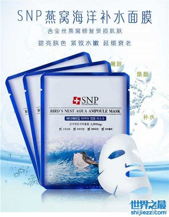 SNP燕窝水库面膜含有燕窝(金丝燕燕窝)萃取物1000mg,对因缺水而引起干燥的皮肤集中进行水分供给,增加皮肤自身含水量,使皮肤润泽水嫩,快速消除皮肤瑕疵,恢复皮肤光滑整洁的自身健康状态。采用细胞质纤维分子,令面膜和脸部更贴合,不影响活动。不含有害成分无防腐剂,矿油,人工色素,合成硅胶。