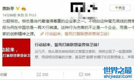 联想在世界500强企业中位居286位,华为则位居285位,但是在14年之后,联想和华为的发展开始变得不同。从那之后,联想的营收出现了停滞的现象,而华为却不同他的营收迅速的增长。而且在联想5g投票事件之后,比美丽的事件还要让人震惊的是,联想公司的创始人,也就是柳传志,他迅速站了出来,并且发布了一篇:行动起来,誓死大营联想荣誉保卫战。