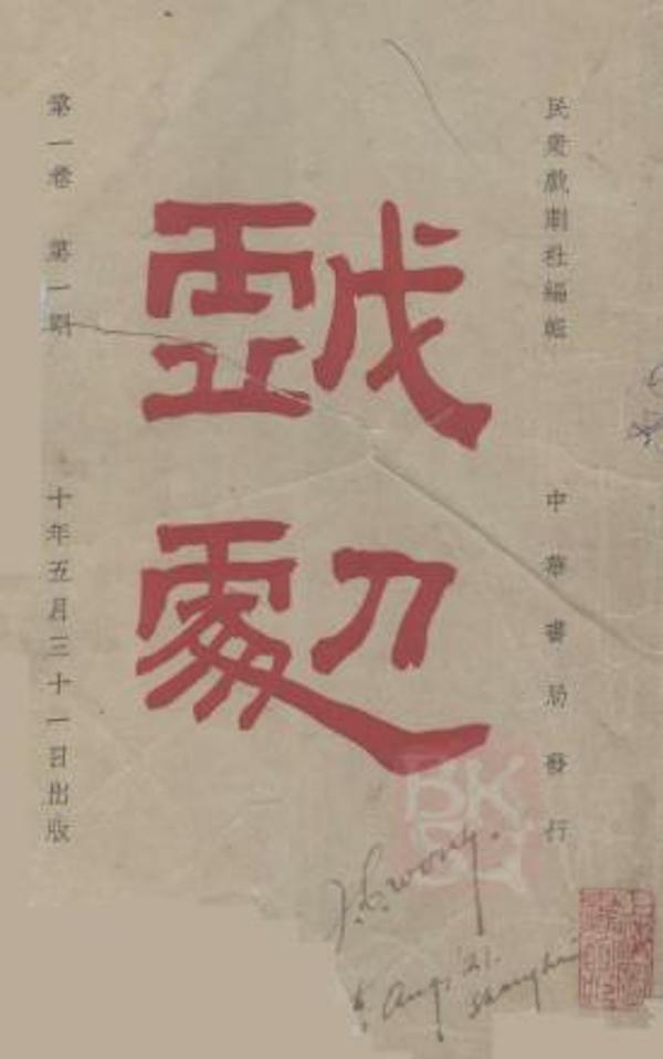 民众戏剧社社刊《戏剧》1921年第1卷第1期创刊号
