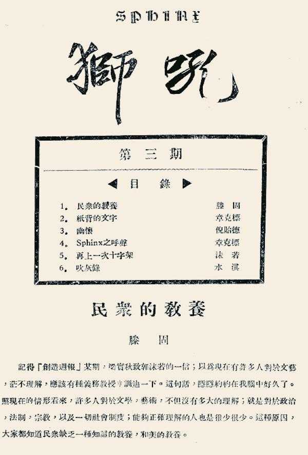 1924年滕固讨论“社会美育”问题的论文《民众的教养》