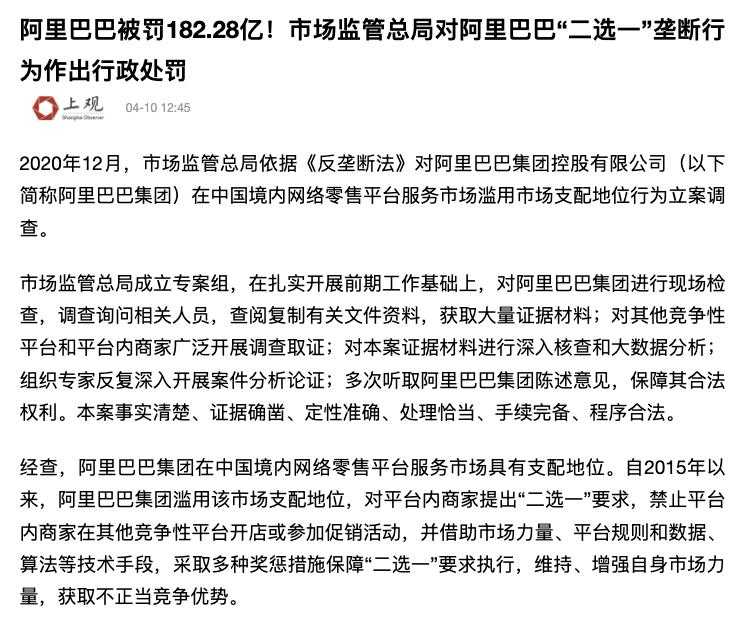 2021年4月10日,监管部门对阿里巴巴的市场垄断行为做出了182.28亿的罚款决定,此举也正式拉响了国内互联网领域反垄断的号角,多个互联网大厂的投资项目被先后叫停,然而其后续的反应直到2022年才开始显现。