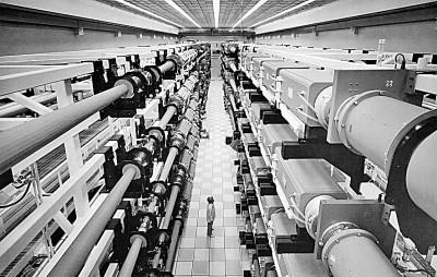 20世纪70年代末期,随着激光技术的迅速发展,高功率激光作为驱动源让可控惯性约束聚变从理论走向了实际。总输出能量达到10千焦的Shiva激光器被首先建立起来,用于在较小驱动能量下进行聚变原理验证,但由于Shiva激光器采用的是红外激光(波长1053纳米),激光注入能量后,激光等离子体参量不稳定性显著,产生大量的超热电子预热了氘氚靶丸,降低了对称性与靶丸压缩,远远没有达到聚变点火的条件。1984年,采用3倍频、波长为351纳米的Nova激光器建造投入使用,激光能量达到40千焦—45千焦,聚变实验如火如荼地进行,但由于不同激光束之间能量存在巨大差异导致严重的成丝和驱动不对称性,最终还是走向失败。尽管Shiva和Nova激光器点火原理验证实验没有成功,但研究人员对内爆过程有了更深入的了解,前进的道路再次变得清晰:即增强辐照均匀性,降低燃料层的瑞利—泰勒不稳定性,并将驱动的激光能量增加至少一个数量级。
